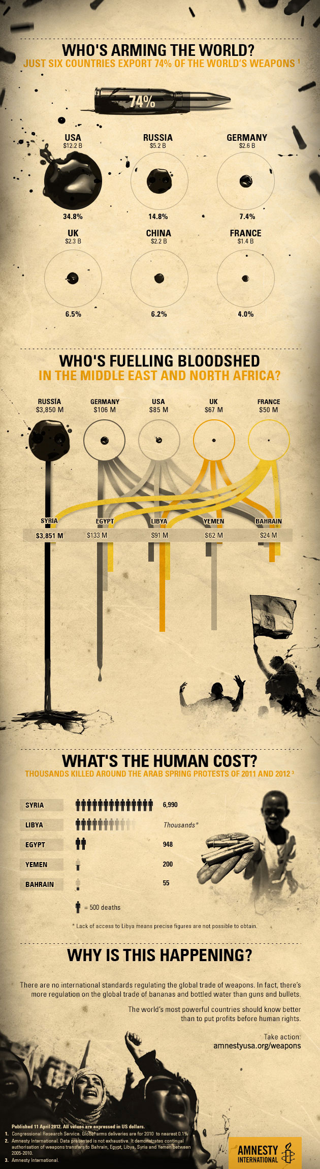 SIX COUNTRIES SUPPLY/EXPORT NEARLY TWO-THIRDS (74%) of the world’s weapons, with the US making up 35 percent of the global total.