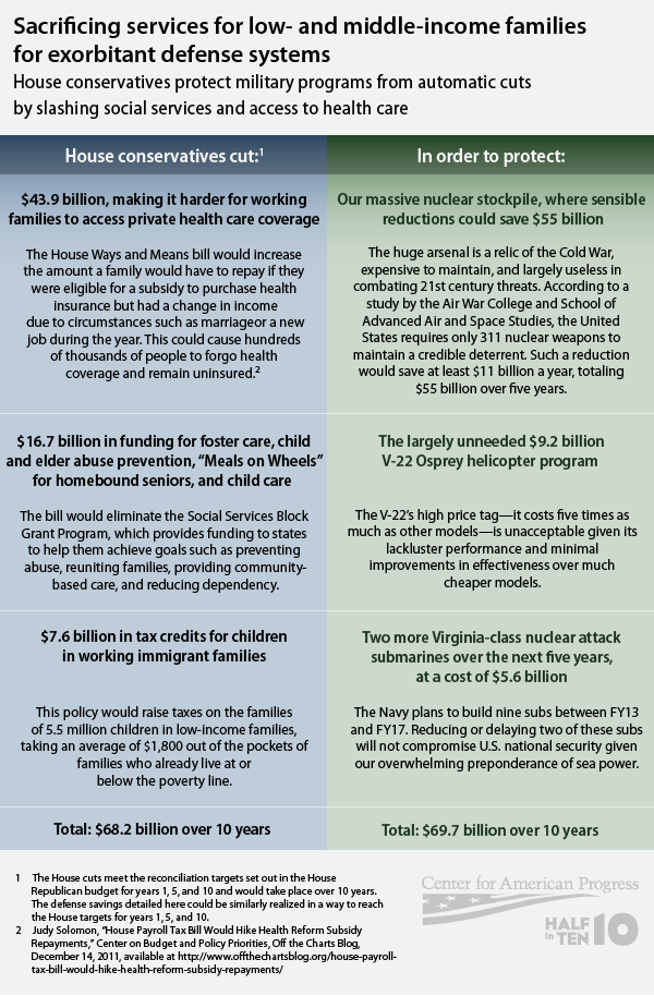 House Republicans are asking low- and middle-income families to sacrifice health care and basic services to preserve redundant defense systems: